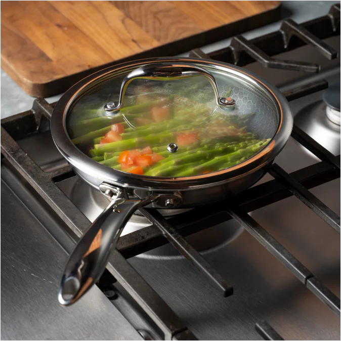 HexClad is the tough-as-nails, non-stick cookware that can withstand any metal utensils without peeling, scratching, or flaking … and it’s oven-safe too!